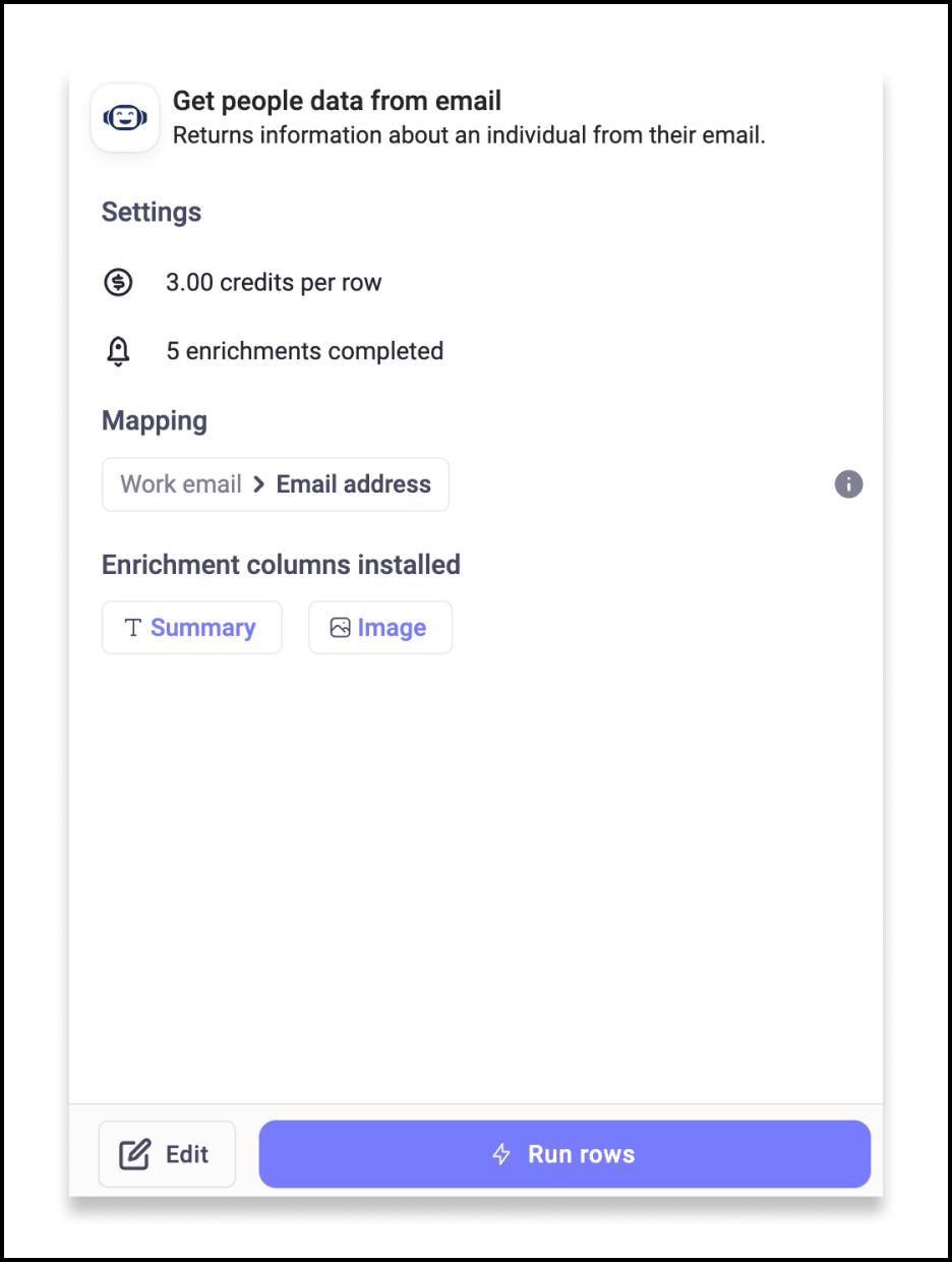 Please note the cost for enrichments is on a per-row basis, meaning the total price = Base Cost x Number of rows to be enriched.